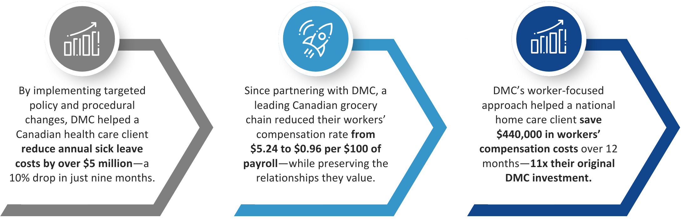 DMC prioritizes safe, sustainable return-to-work outcomes—driving down costs while supporting recovery and long-term success.